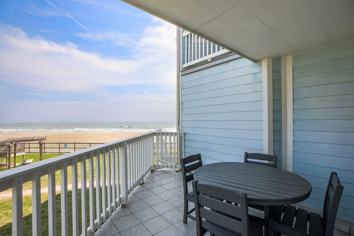 This unique double balcony features plenty of room to enjoy the front-row view of the ocean. Ready to go to the beach? Grab the chairs and beach toys in the unit and don't forget the sunscreen!